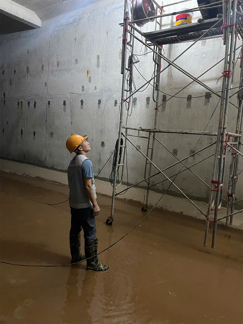 - Giải pháp: Xây Dựng Bảo Tín sử dụng công nghệ bơm vữa chống thấm áp lực cao, gia cố các mạch ngừng và xử lý nứt trần bằng vật liệu chuyên dụng, đảm bảo ngăn thấm triệt để và duy trì độ bền của công trình.