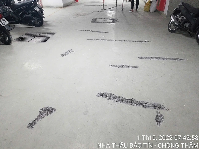 - Giải pháp: Xây Dựng Bảo Tín áp dụng công nghệ chống thấm đáy hầm tiên tiến bằng bơm vữa cao áp và vật liệu ngăn nước chuyên dụng. Đồng thời, chúng tôi gia cố các vết nứt và đảm bảo khả năng chống thấm lâu dài, ngăn ngừa nước ngầm xâm nhập, bảo vệ toàn diện nhà để xe và công trình.
